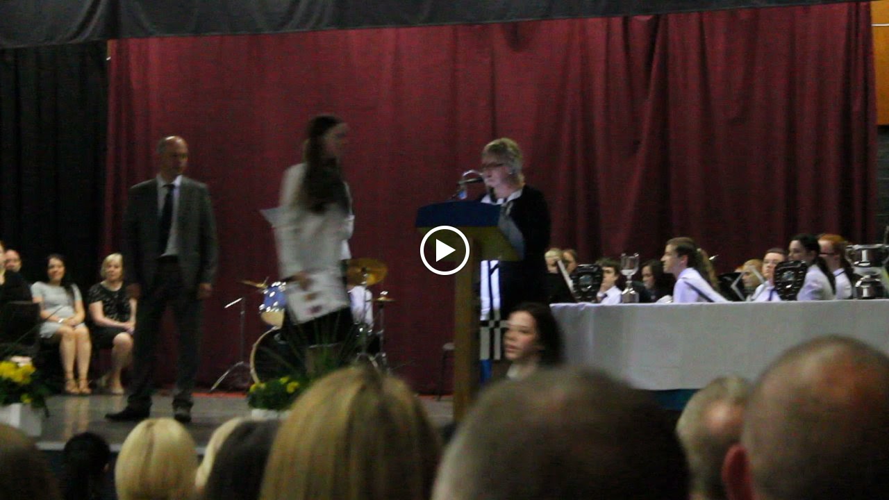 Zuerst war das Tochterkind nicht so begeistert davon, daß ich zu ihrer Verleihung komme. Als sie mich heute im Publikum erspähte war sie aber recht erfreut. Rechts vorne neben dem größten Pokal, mit dem "woodwind" der Band...